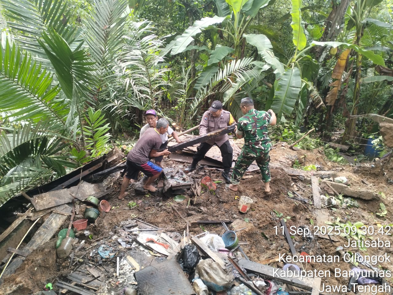 Longsor Terjang Dapur Rumah Di Desa Jatisaba, Bhabinkamtibmas Polsek Cilongok Polresta Banyumas Langsung Cek TKP