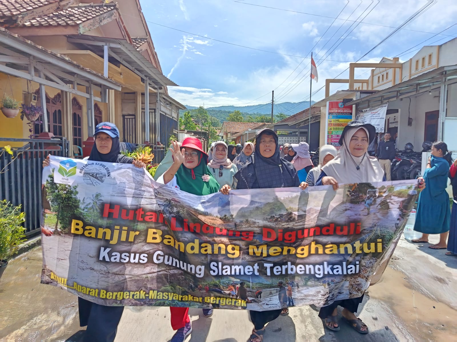 Dalam aksi tersebut, para emak menyoroti akar masalah yang menjadi penyebab banjir: kerusakan alam di kawasan Gunung Slamet akibat penebangan liar dan eksploitasi oleh pihak tidak bertanggung jawab. Hutan lindung yang digunduli dinilai tidak hanya merusak ekosistem, tetapi juga meningkatkan potensi bahaya banjir bandang bagi warga.