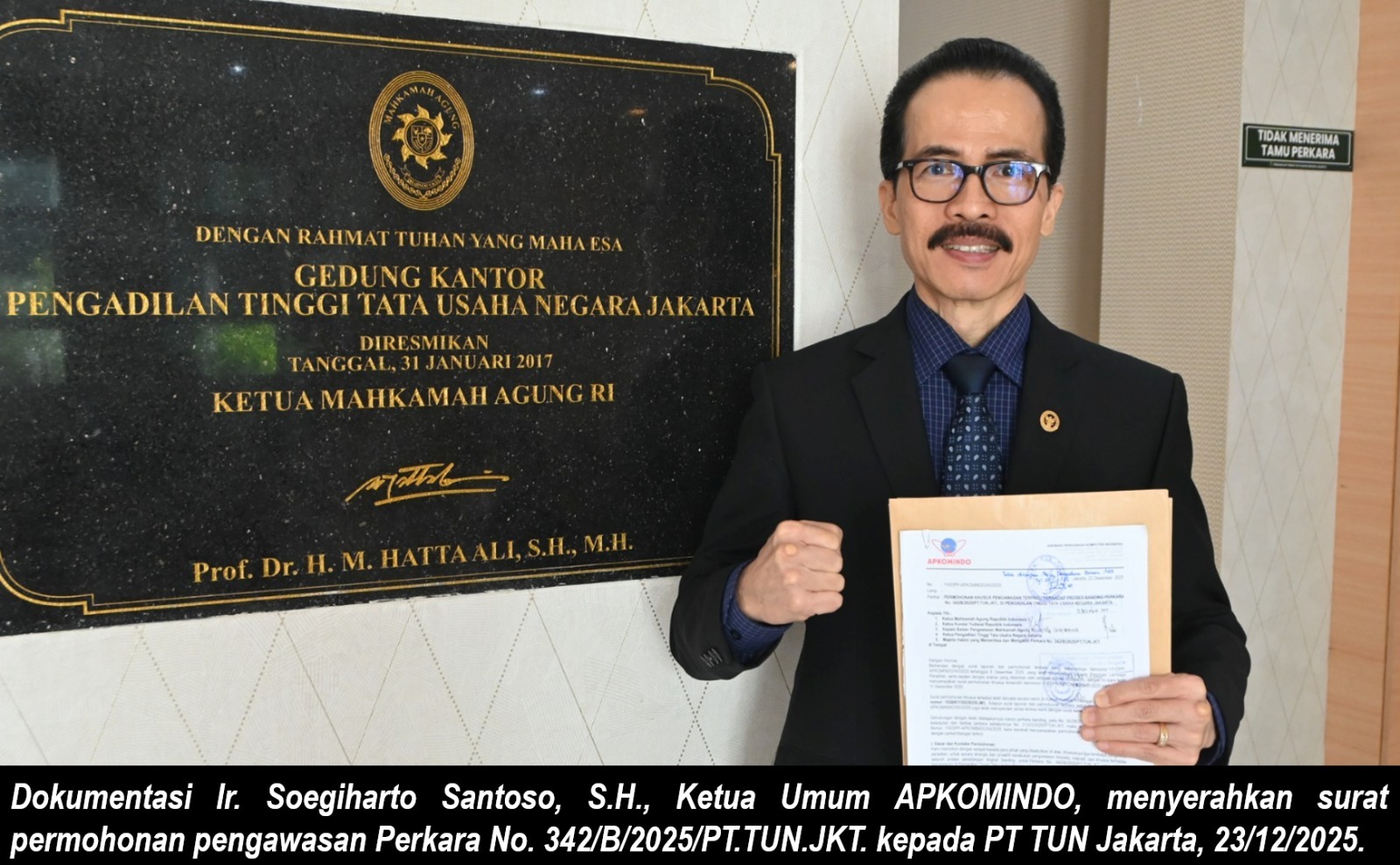 Melalui Surat Nomor 116/DPP-APKOMINDO/XII/2025 tertanggal 22 Desember 2025 yang ditujukan kepada Ketua Mahkamah Agung RI, Ketua Komisi Yudisial RI, dan Kepala Badan Pengawasan MA RI, serta secara khusus kepada Ketua PT TUN Jakarta dan Majelis Hakim yang memeriksa perkara Nomor 342/B/2025/PT.TUN.JKT., Hoky memohon pengawasan intensif terhadap proses persidangan banding.